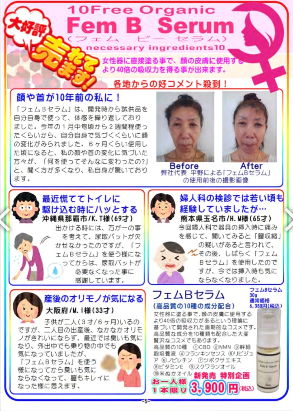 原料名:CBD、NMN、幹細胞培養液、フランキンセンス、リピジュア、ノビレチン、ツボクサエキス、ビタミンE、スクワレンオイル、米ぬかオイル