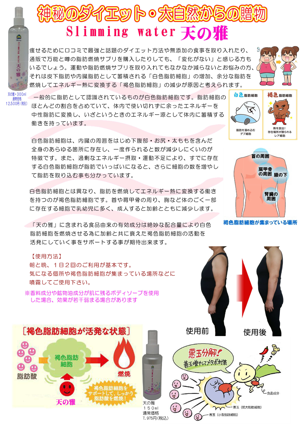 神秘のダイエット・大自然からの贈物 Slimming water 天の雅