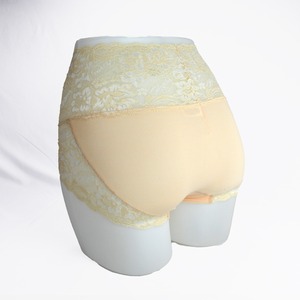 補整下着屋さんのデザイン【補整下着屋さんのデザイン・ショーツを”デザイン重視”で選んでいませんか?】見た目は可愛いけれど、はきごこちは今ひとつ…。「ショーツが体に食い込む」「動くとどんどんずれていく」そんなショーツに慣れてしまっていませんか?そのまま気に留めずに履きつづけていくと、ヒップラインだけではなく、ボディラインをも崩しかねません。ショーツは毎日、身に着けるもの。だからこそ、身体に合うものを選ばなくてはならないのです。 【補整下着屋が手がけた安心設計】バランスの良いキレイなボディラインを作るときに、まず考えなければならないのは脂肪の動きです。生活習慣や姿勢、身に着けている下着によって脂肪の動きはどんどん変化します。身体のどの部分に脂肪が流れているのか、どの部分に脂肪を集めればいいのか…。専門的な話に聞こえるかもしれませんが、実はとても簡単なことです。ヒップラインをきれいに整えるには、ヒップをすっぽり包むショーツを選ぶのが鉄則です。ヘーラーのショーツは、伸縮性のある綿100%の身生地を使用。ヒップをつぶさずに優しく包み込む立体設計になっています。ヒップにぴったりフィットし、動いてもずれたり体に食い込んだりしません。また、機能性を重視してデザインが地味にならないように、たっぷりのレースを使って おしゃれに仕上げました。